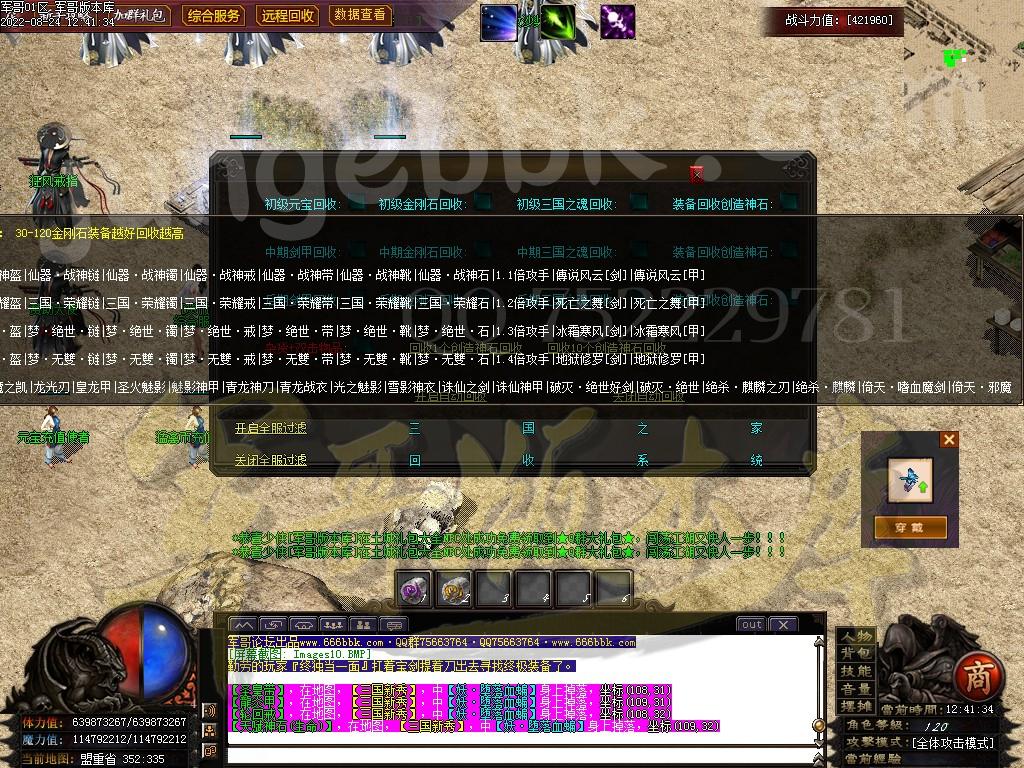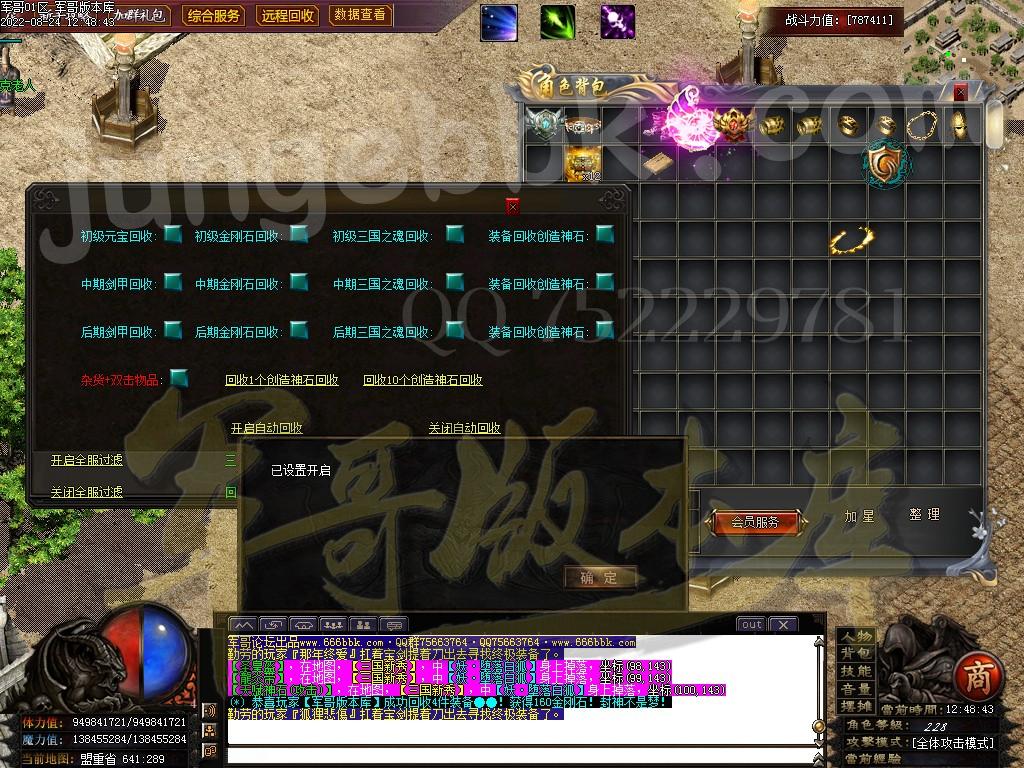 3.三国之魂:从游戏中打装备回收获取的!一般是时装类型的装备和三国类型的装备可以回收三国之魂!转生9转以后需要把三国之魂取出来