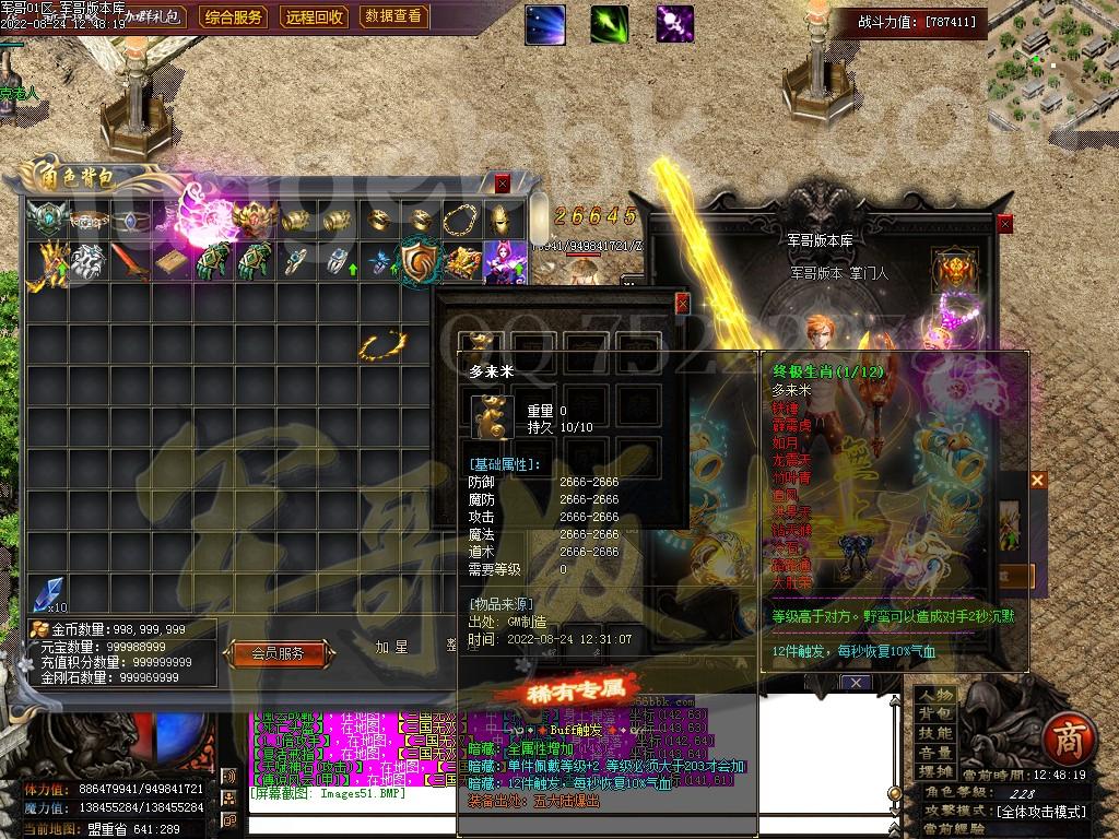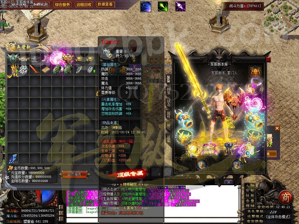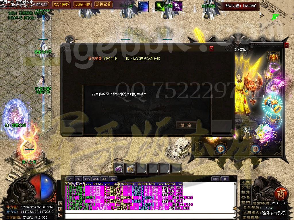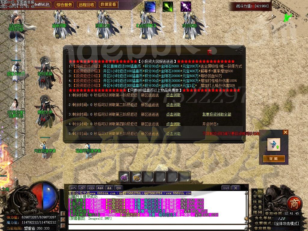 7.快速爆率:礼包-赞助-满勋章(建议老板快速弄到神王〉-狂暴(必开-不开不爆终极〉-捐献﹒满称号-(后期自行体验!麻痹无效复活无效都加爆军最高司达到百倍爆率)