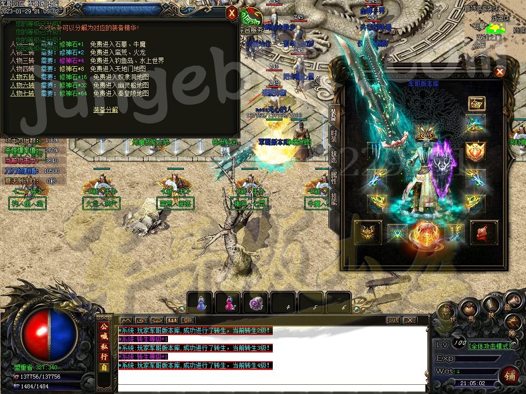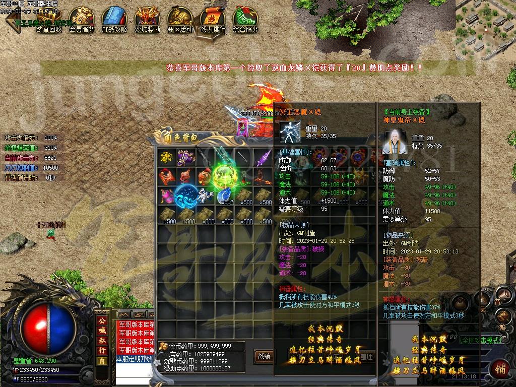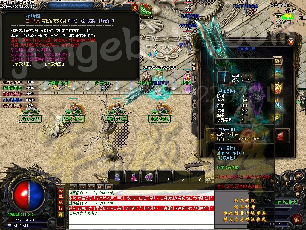 2、装备回收 本F装备回收元宝跟大量金币!