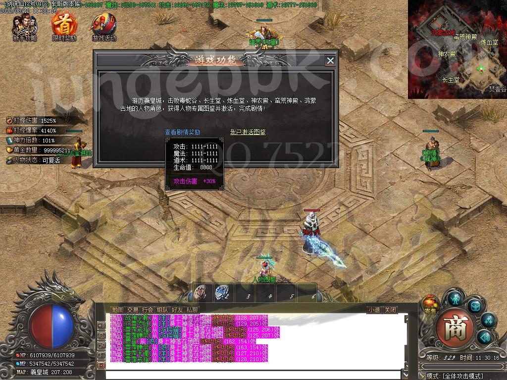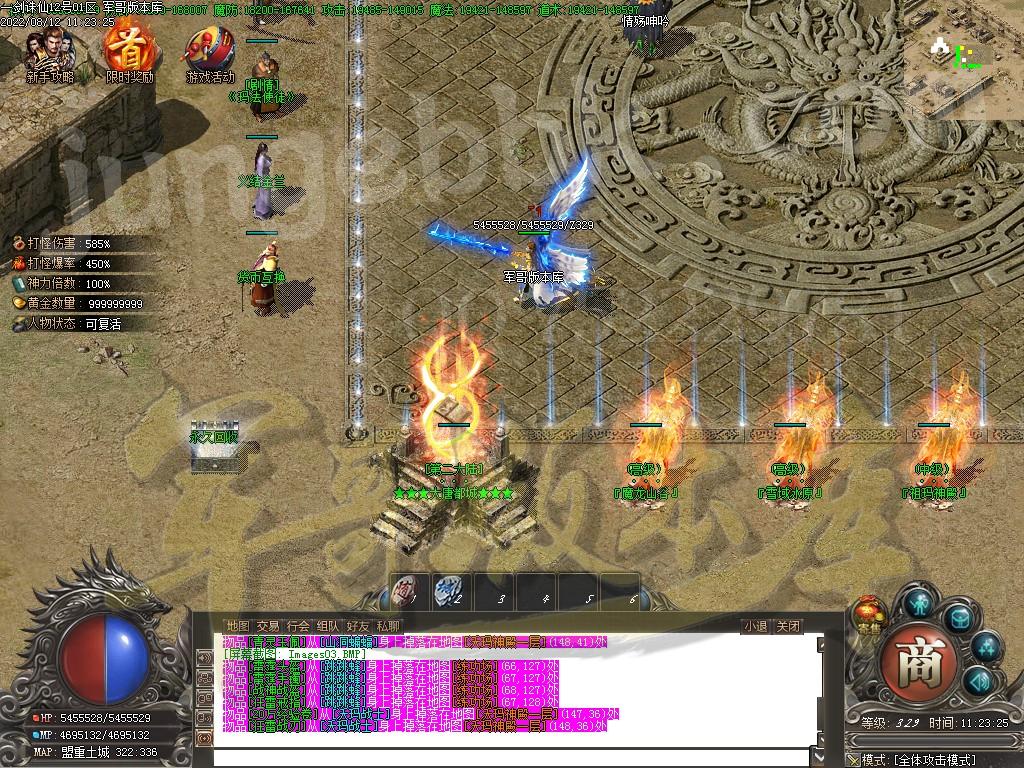 礼包+捐献+狂暴+神魔+斗笠直接能升的都全部升满,一直打BOSS就是了,前期优势非常大。