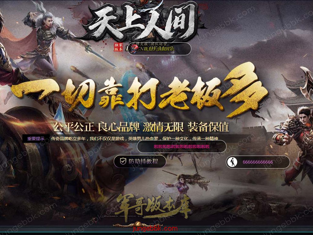 此版本为独家特色天上人间·单职业,一切装备靠打!