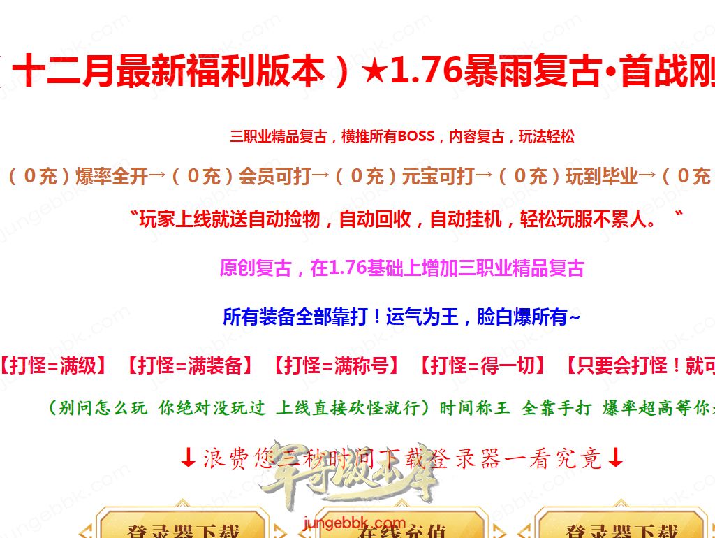 本站欢迎代销互换精品传奇版本、联系业务QQ:3007732332 75662793 注:由于演示网站模板站点不定时更新更换版本 具体版本内容以本帖演示为准 下载本站50米以上版本 如发现漏洞 可联系站长免费修复。